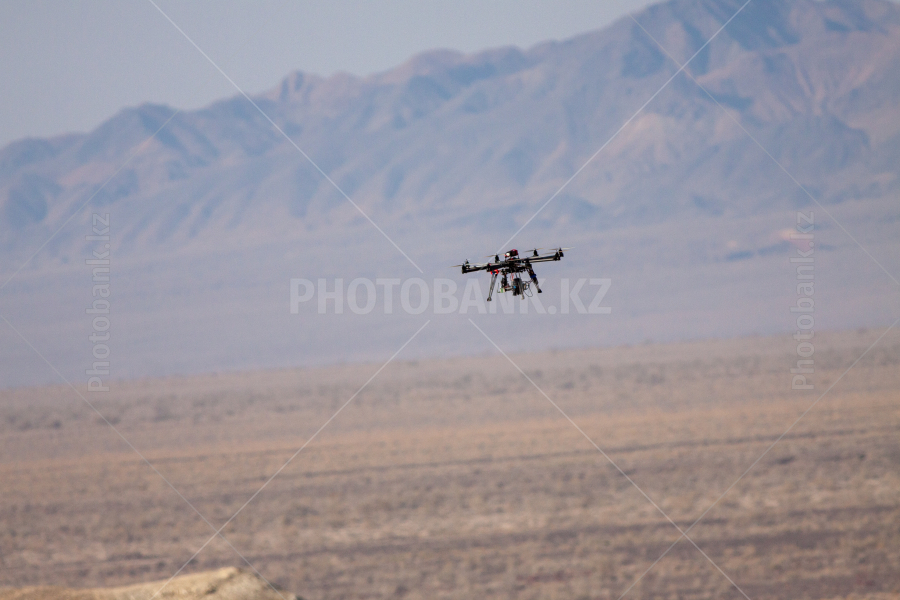 Национальный парк "Алтын-Емель". Большой съемочный дрон в полете.