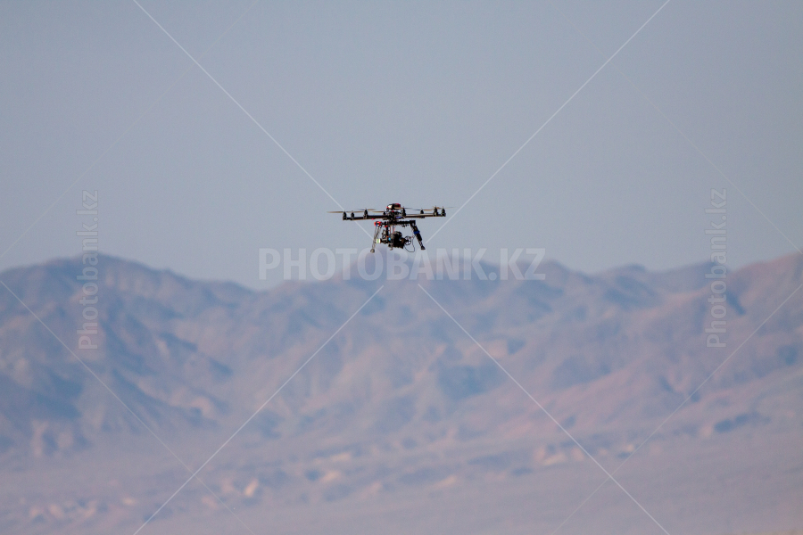 Национальный парк "Алтын-Емель". Большой съемочный дрон в полете.
