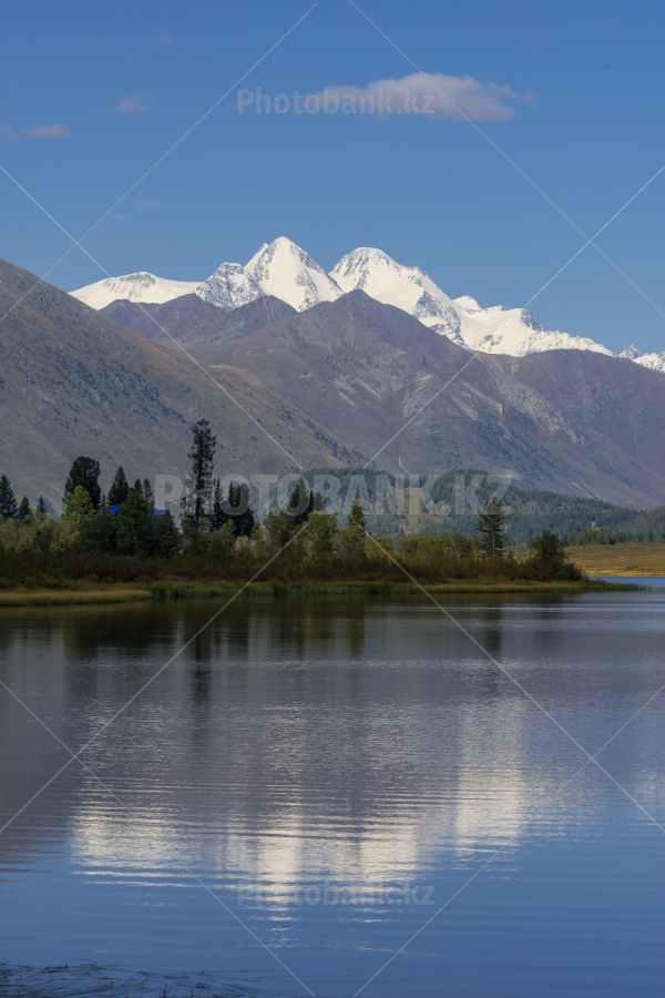 Гора "Белуха" отражается в водах озера Язевое. (Алтай, Казахстан)