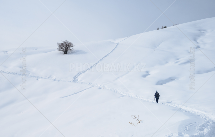 Зимой по тропинке идет женщина