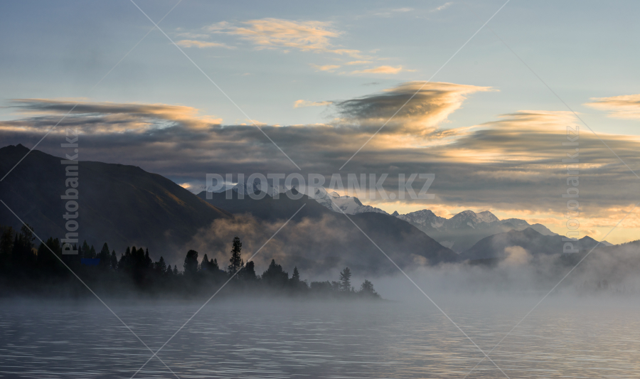 Озеро Язевое. (Алтай, Казахстан)Гора Белуха скрыта облаками.