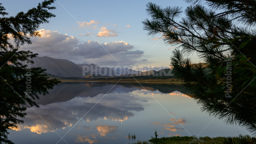 Озеро Язевое. (Алтай, Казахстан)Гора Белуха скрыта облаками.