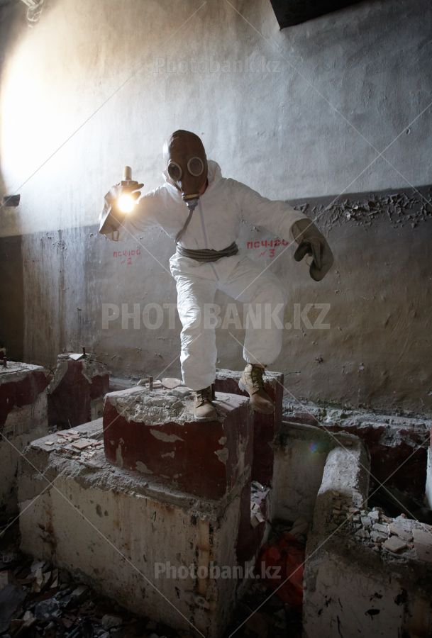 The man in a protective outerwear suit