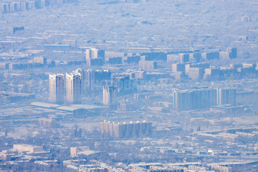 Город Алматы зимой. Вид со стороны гор.