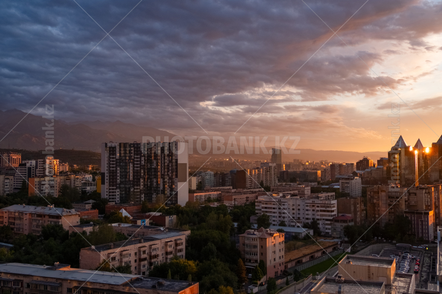 Алматинские высотки на закате.