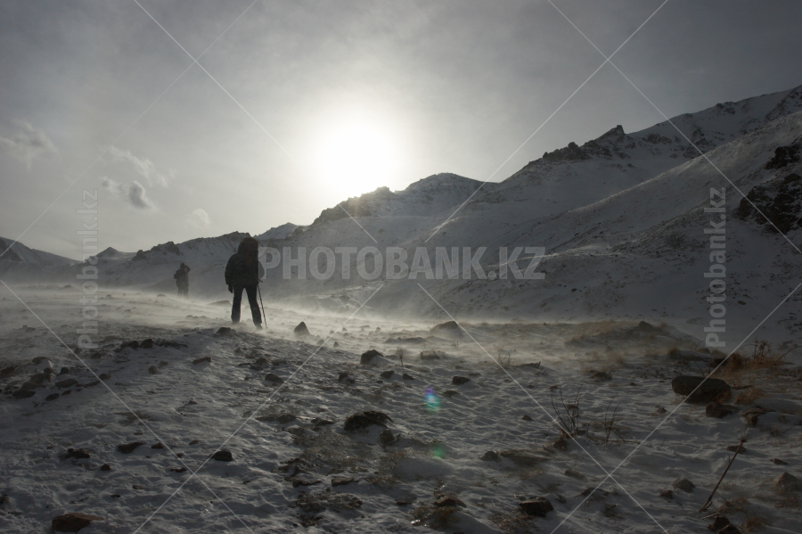 People in blizzard at the mountains