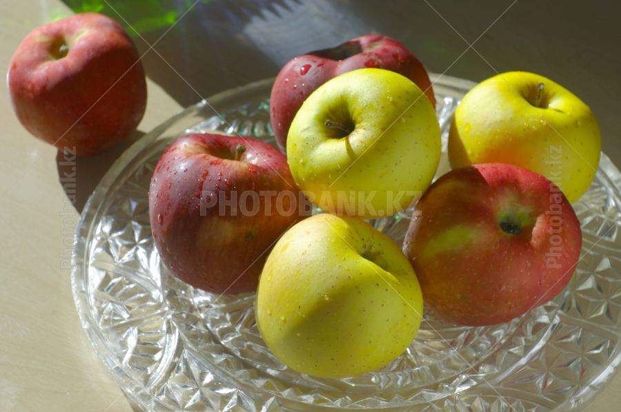 Few apples at the crystal dish
