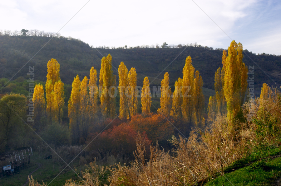 Golden poplars. View from hill