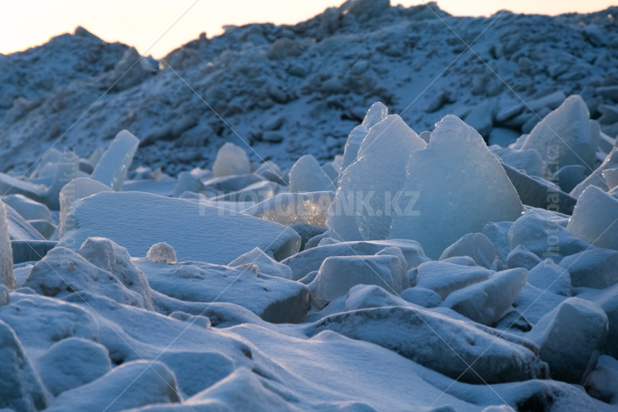 Ледяные торосы на Капчагайском водохранилище