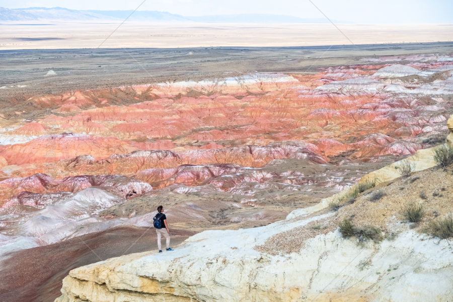 Мужчина стоит среди разноцветных скал Кеин-кериша