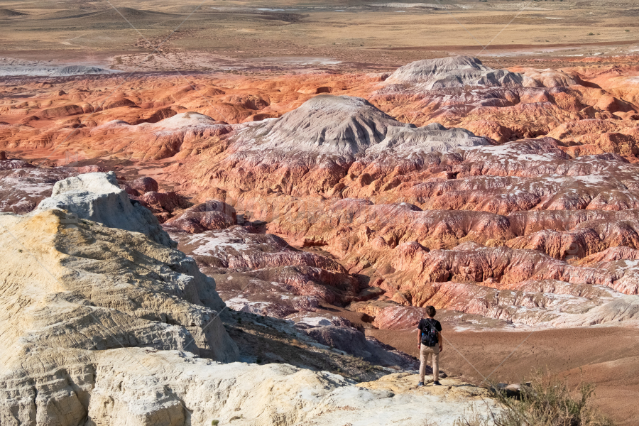 Мужчина стоит среди разноцветных скал Кеин-кериша