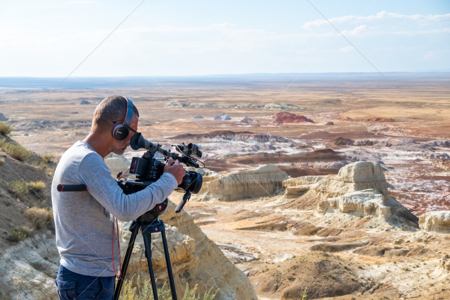 Видеооператор снимает пейзаж на плато Кеин-кириш