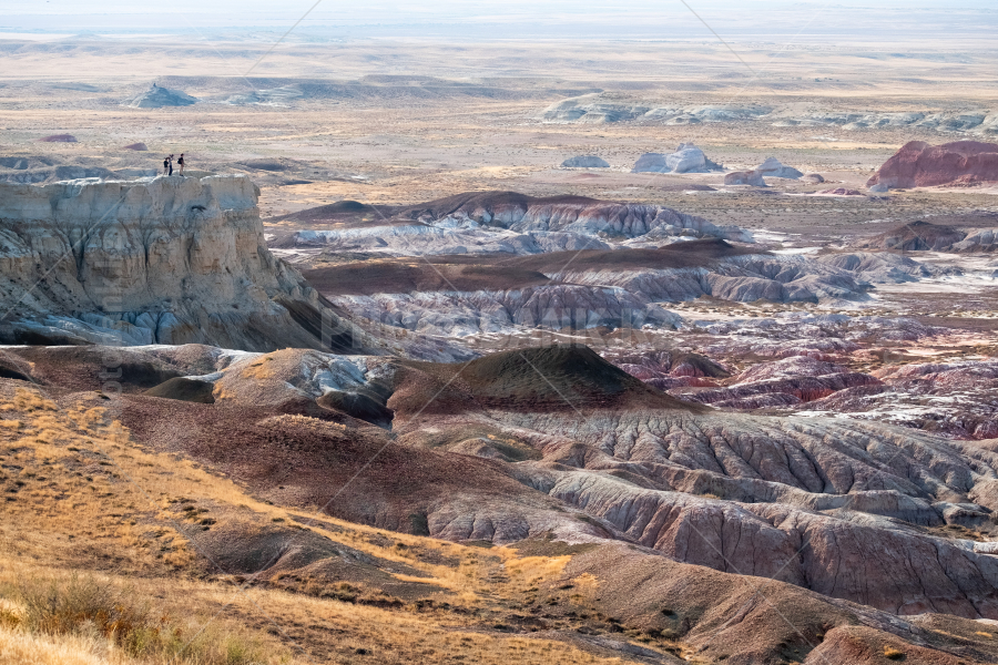 Съемочная группа снимает со скалы разноцветные горы плато Кеин-кериш