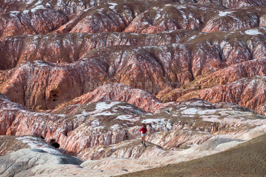 Девушка прогуливается среди разноцветных скал Кеин-кериша.