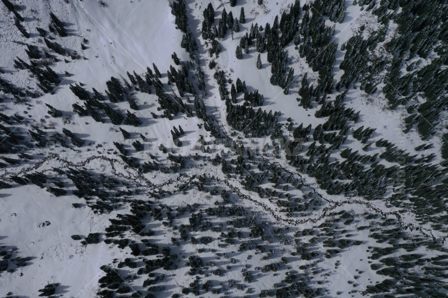 Склоны гор Заилийского Алатау, поросшие тяньшанскими елями. Вид с высоты птичьего полёта.