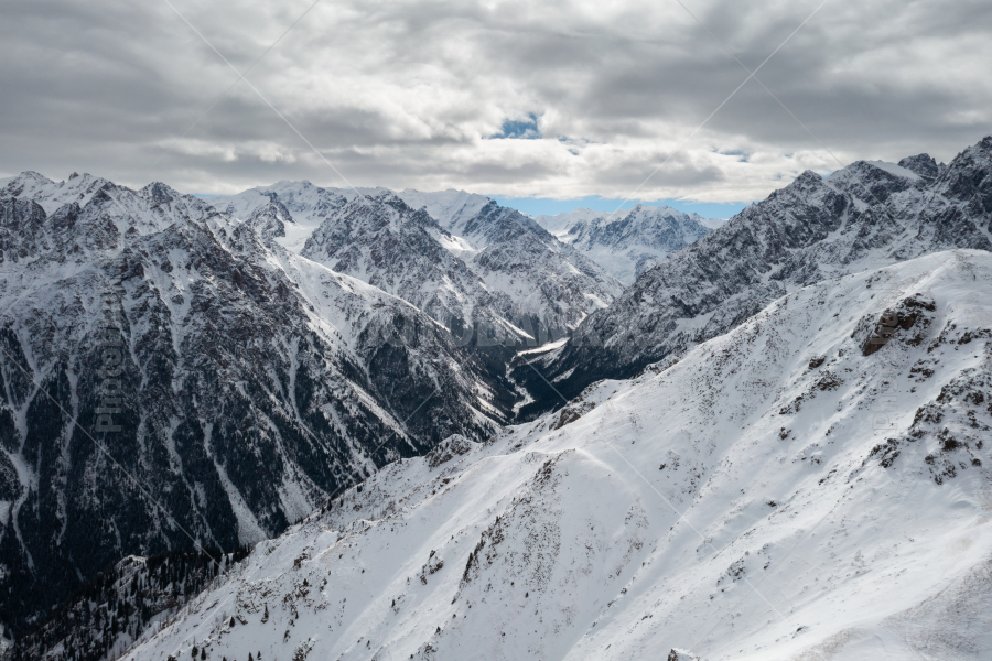 Склоны гор Заилийского Алатау, поросшие тяньшанскими елями. Вид с высоты птичьего полёта.