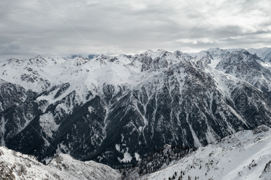 Склоны гор Заилийского Алатау, поросшие тяньшанскими елями. Вид с высоты птичьего полёта.