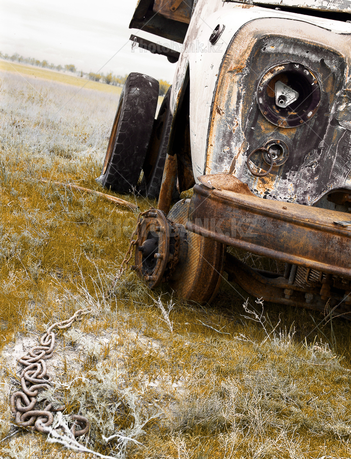 Old rust truck with chain