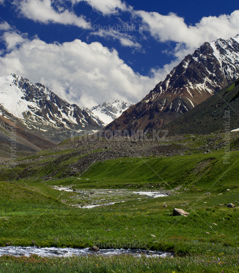 Mountain ravine and clouds. Near far from Jassylkol lake. Kyrgyzstan