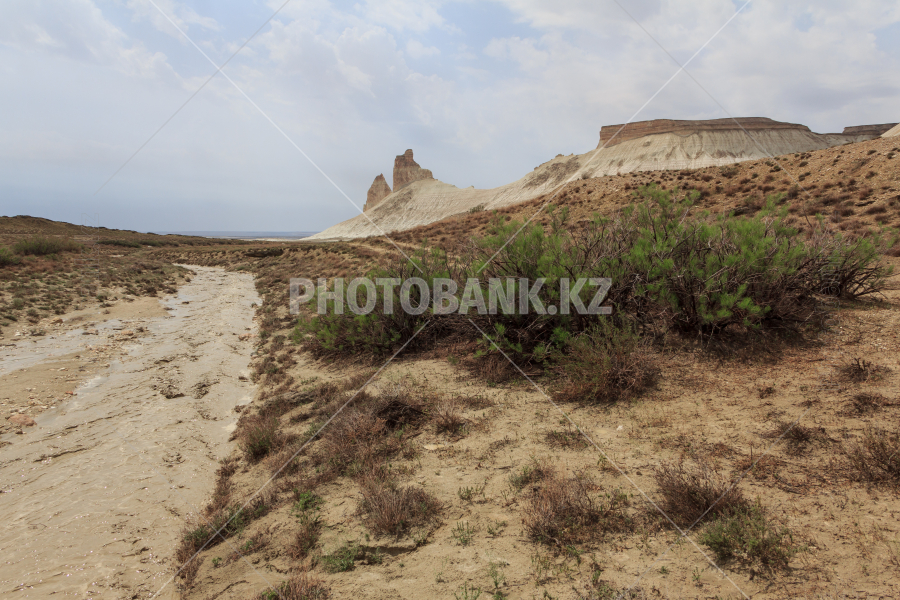 После сильных дождей сухое русло превратилось в бурный поток. Босжира. Мангистау. Казахстан