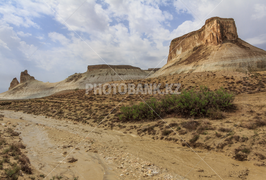 После сильных дождей сухое русло превратилось в бурный поток. Босжира. Мангистау. Казахстан