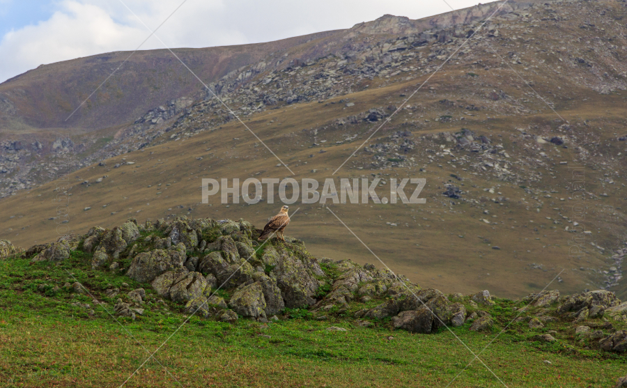 Длинноногий канюк (Buteo rufinus) сидел на скале