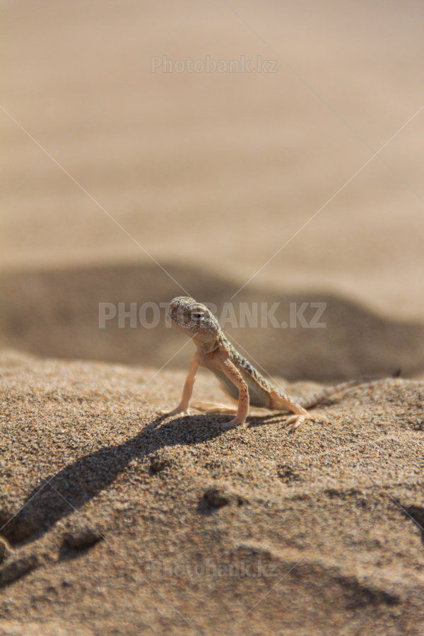 Lizard (Phrynocephalus guttatus) on a sand dune. Kazakhstan, Almaty region.
