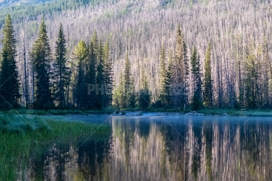 Озеро Рахмановские ключи. Горы отражаются в воде.