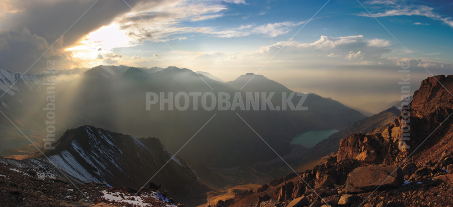 Shot from peak Sovetov (elevation of viewpoint more than 4000 m). Below - Big Almaty city (Kazakhstan).