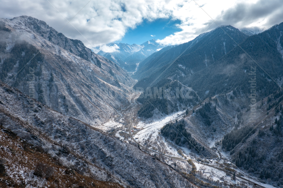 Склоны гор Заилийского Алатау, поросшие тяньшанскими елями.
