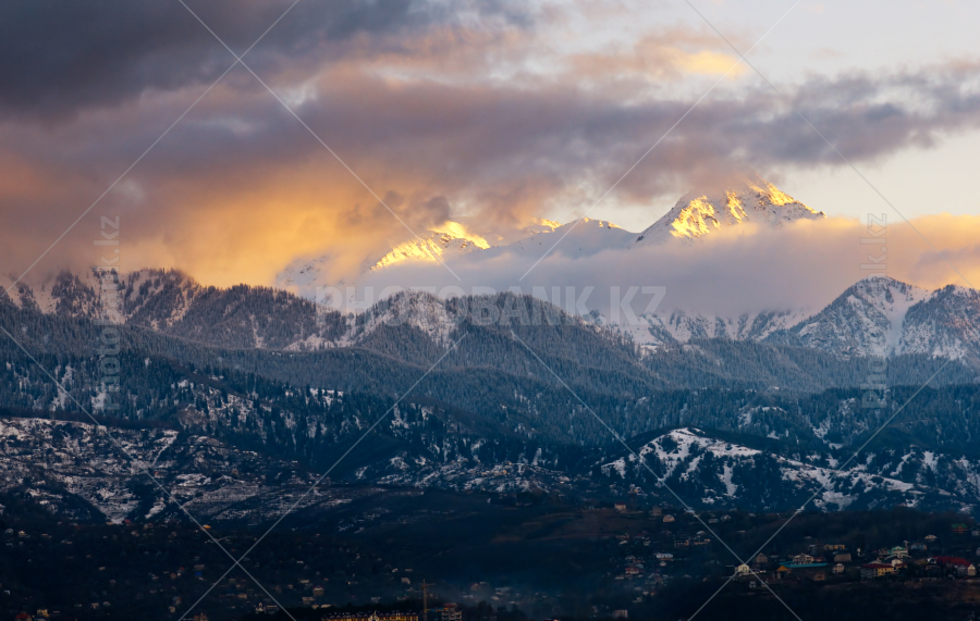 Sunset at Mountain after rain. Kazakhstan, Zailiysky Alatau sierra, Almaty city envirounment.