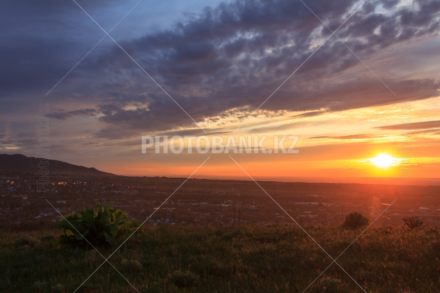 Закат над городом Талгар. Вид с окрестных холмов.