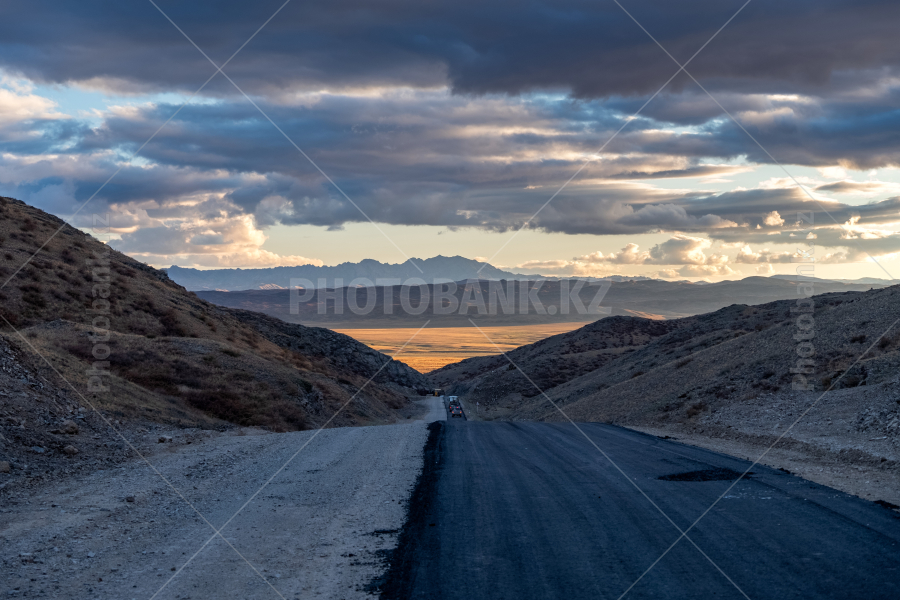 Строящаяся дорога на одном из превалов в горах Тарбагатай