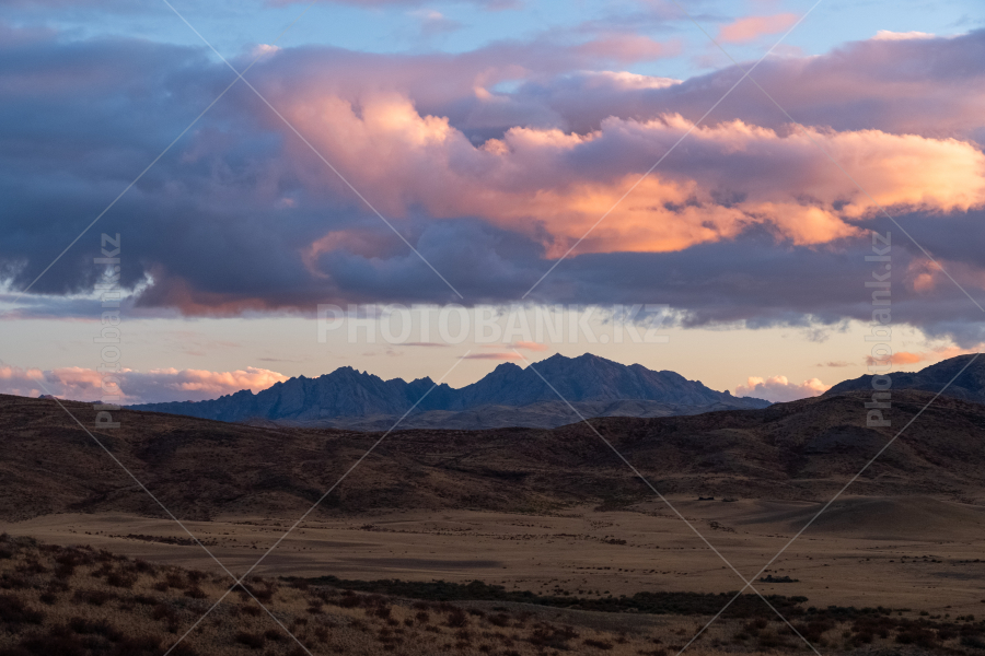 Горы Тарбагатай на закате.