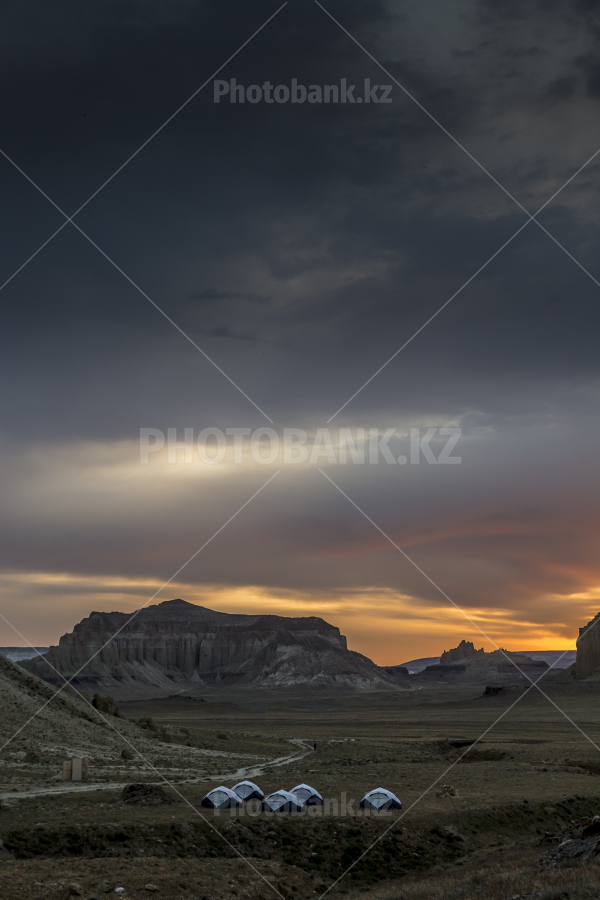 Tourist camp in the canyons of Ustyurt. Mangystau, Western Kazakhstan.