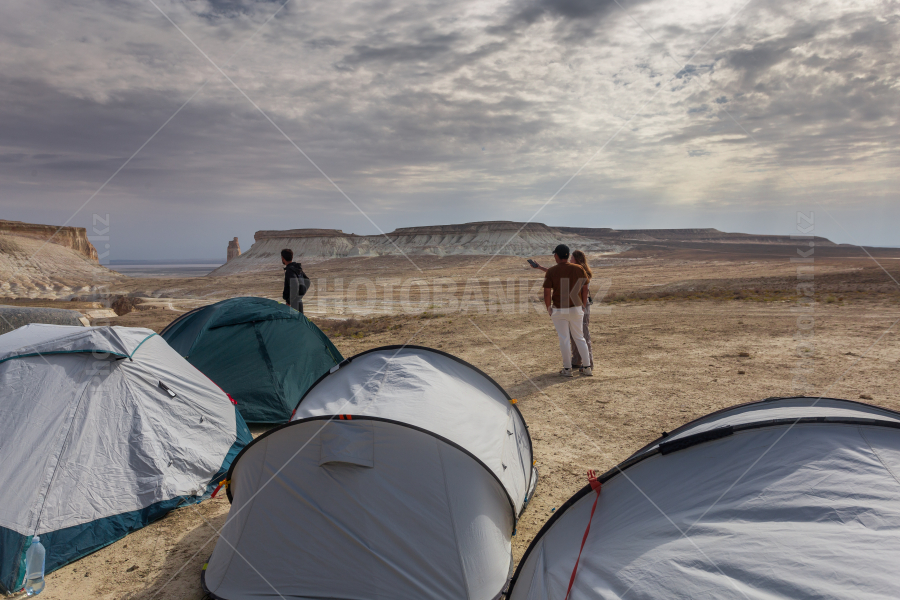 Tourist camp in the canyons of Ustyurt. Mangystau, Western Kazakhstan.