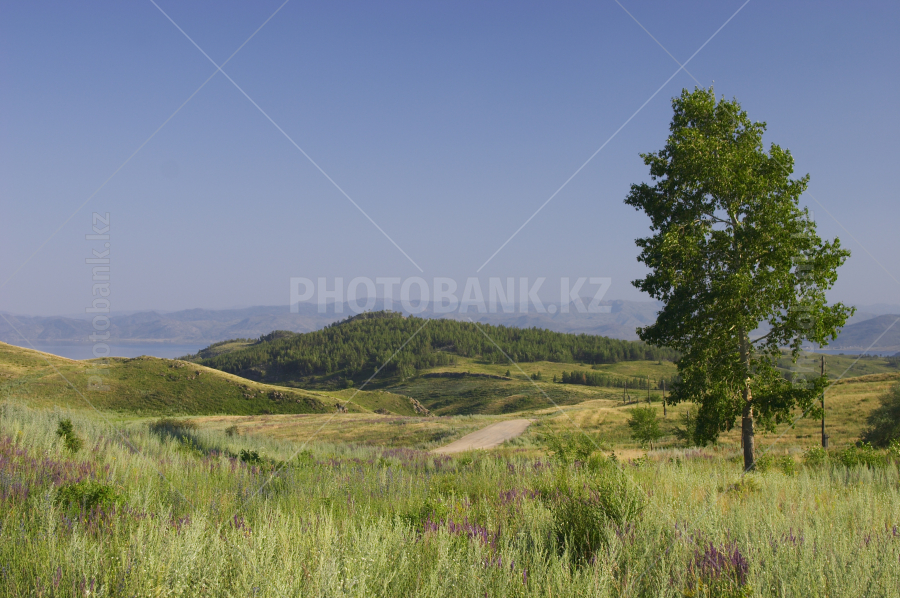county road lead to Buchtarma reservoir in Eastern Kazakstan