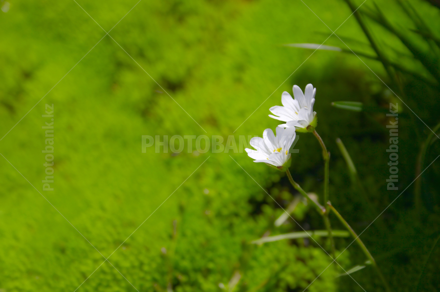 two small flowers on moss background