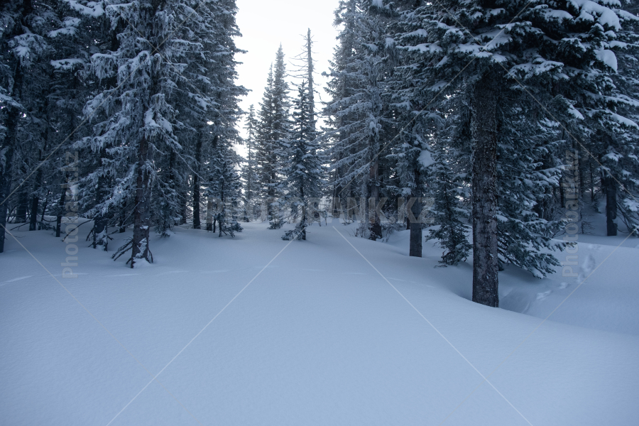 Склоны гор Заилийского Алатау, поросшие тяньшанскими елями. Зима. Окрестности Алматы.