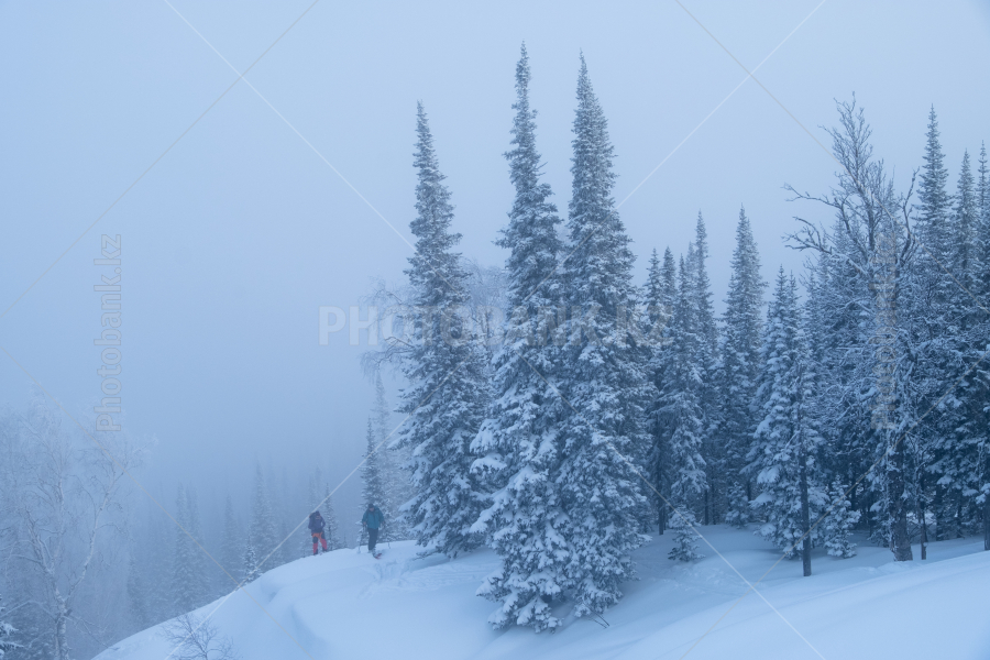 Склоны гор Заилийского Алатау, поросшие тяньшанскими елями. Зима. Окрестности Алматы.