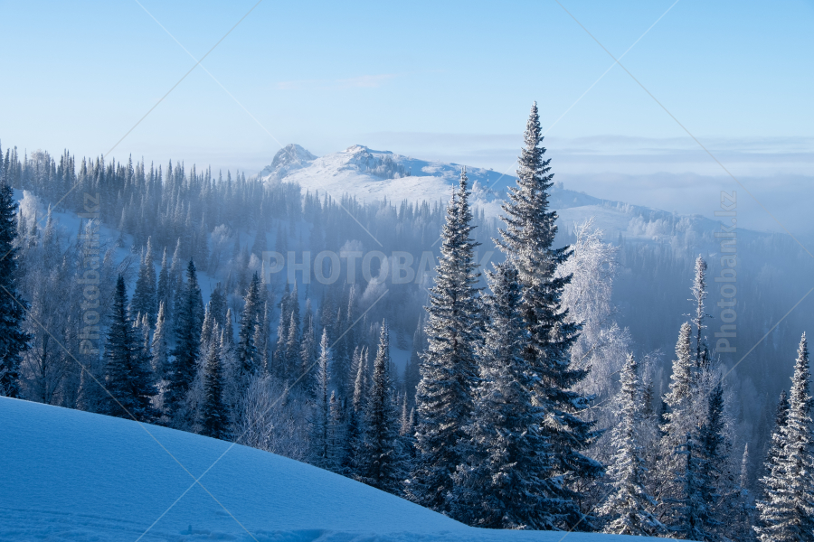 Склоны гор Заилийского Алатау, поросшие тяньшанскими елями. Зима. Окрестности Алматы.