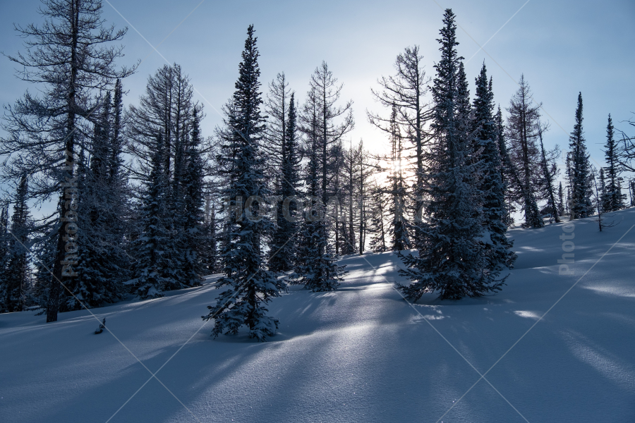 Склоны гор Заилийского Алатау, поросшие тяньшанскими елями. Зима. Окрестности Алматы.