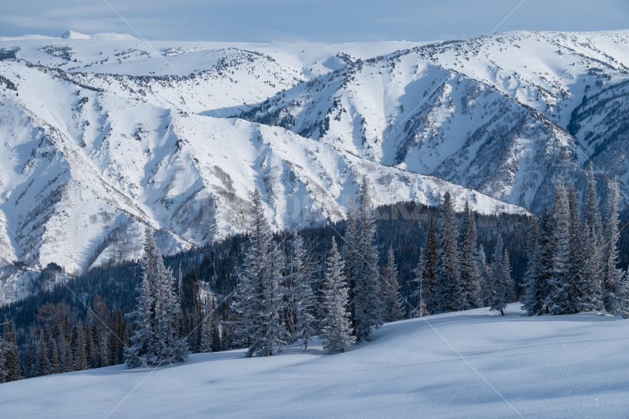 Склоны гор Заилийского Алатау, поросшие тяньшанскими елями. Зима. Окрестности Алматы.