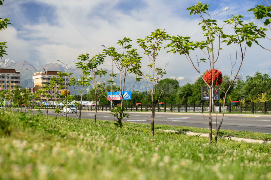Восточная объездная кольцевая дорога Алматы/Алматы, Казахстан - 22 июня 2014 года; Видна дорога с машинами и телебашня.